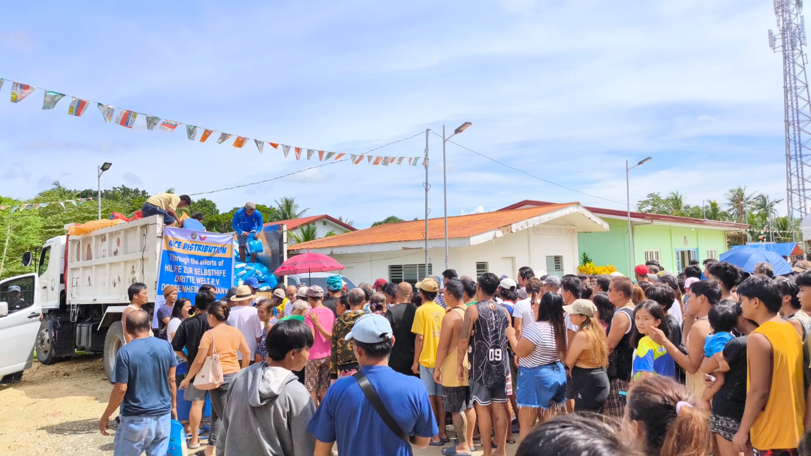 Am Sonntag, den 19.10.2025 fuhren wir früh morgens etwa 3 Stunden in den Norden Cebus um Reis an Bedürftige Erdbebenopfer zu verteilen. Dort waren die Schäden durch das Erdbeben immens. Die beigefügten Fotos zeigen die eingestürzten Gebäude und die Verwerfungen des Straßenbelages. Viele Menschen kampieren in Zelten, weil ihre Häuser beschädigt sind oder völlig zerstört wurden. Wir fuhren in einem gemeindeeigenen Bus. Uns begleiteten noch ca. 20 Gemeindearbeiter und Volunteere, die alle bei der Verteilung mithelfen wollten.Familien erhielten je 5 kg Reis. Zuvor hatten die Behörden Bezugsscheine ausgegeben. Es war alles gut organisiert. Wir danken allen Spendern des Vereins für die Unterstützung und die Hilfsbereitschaft.